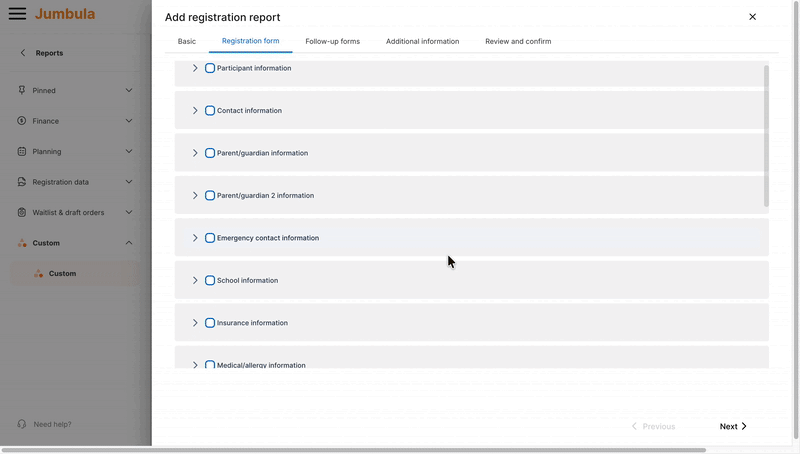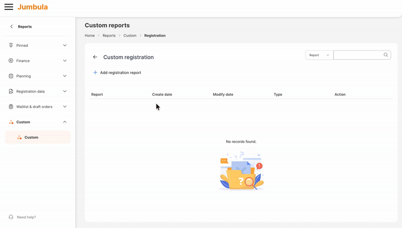 Your report has been added to your reports list. Click the Action button and select Run to generate and view it. As shown in the GIF below, you can use filters to narrow down your report and get the exact data you need. You can also sort the report and choose which registration statuses, program types, and other details to display.