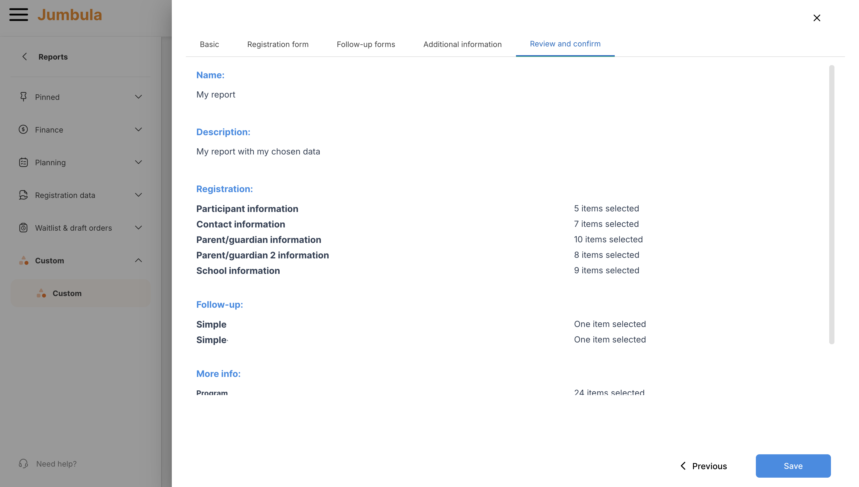 Review your selections to ensure all necessary fields are included. When you're ready, click Save.