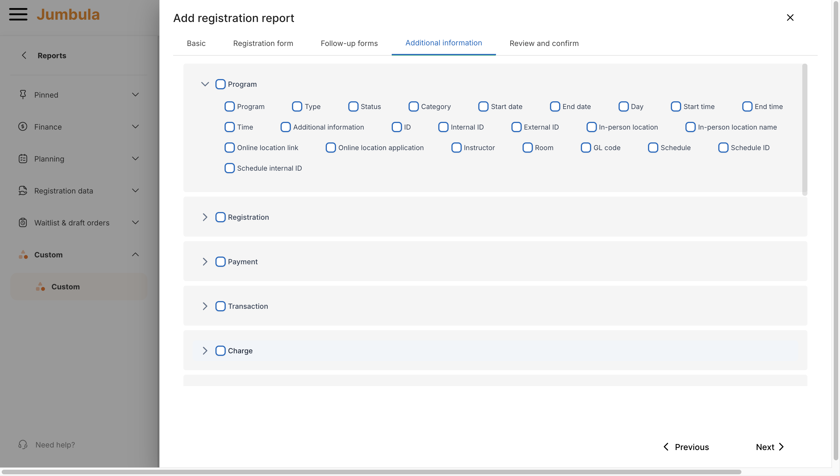 Select any additional fields you want to add to your report related to seasons, programs, and their configurations: