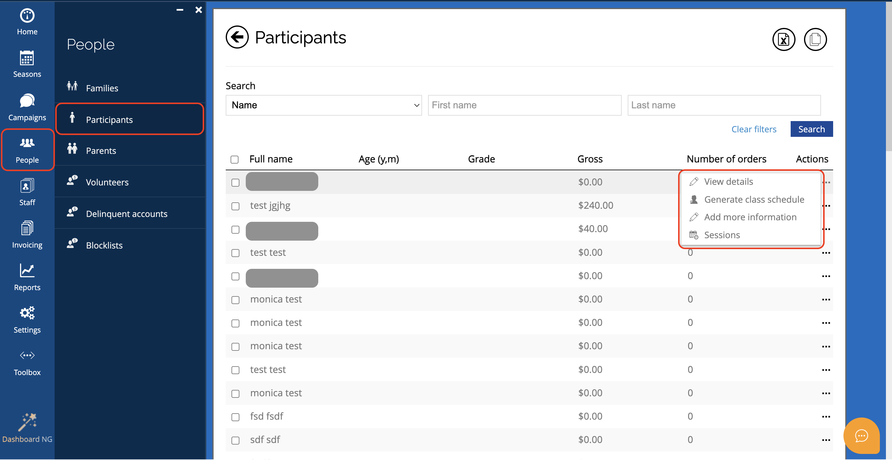 - View details: View the participant’s age, grade, and total number of enrollments.