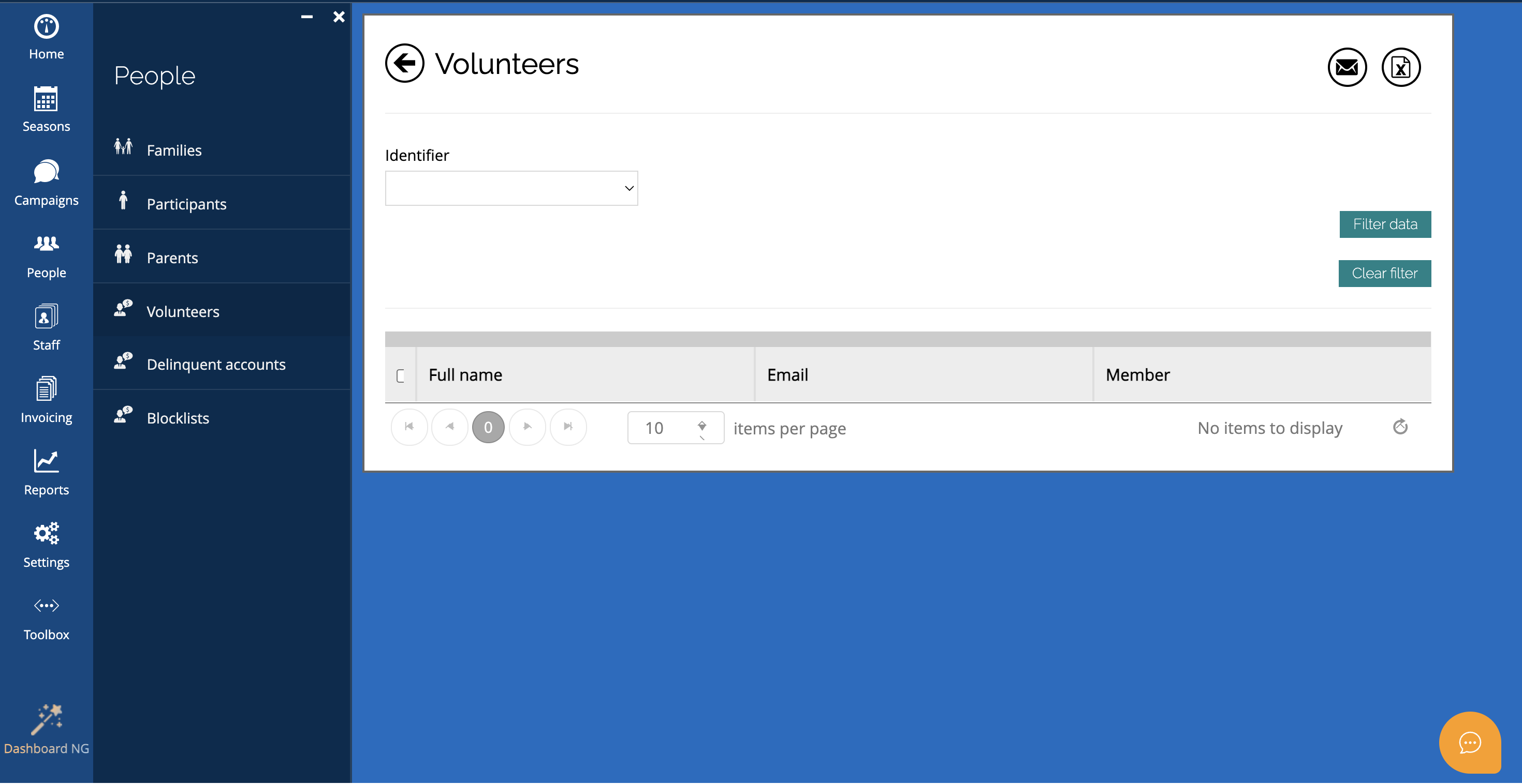 If your registration form includes a Volunteer checkbox, anyone who selects it will be automatically tagged and listed here. This makes it easy to email your volunteer base in bulk.