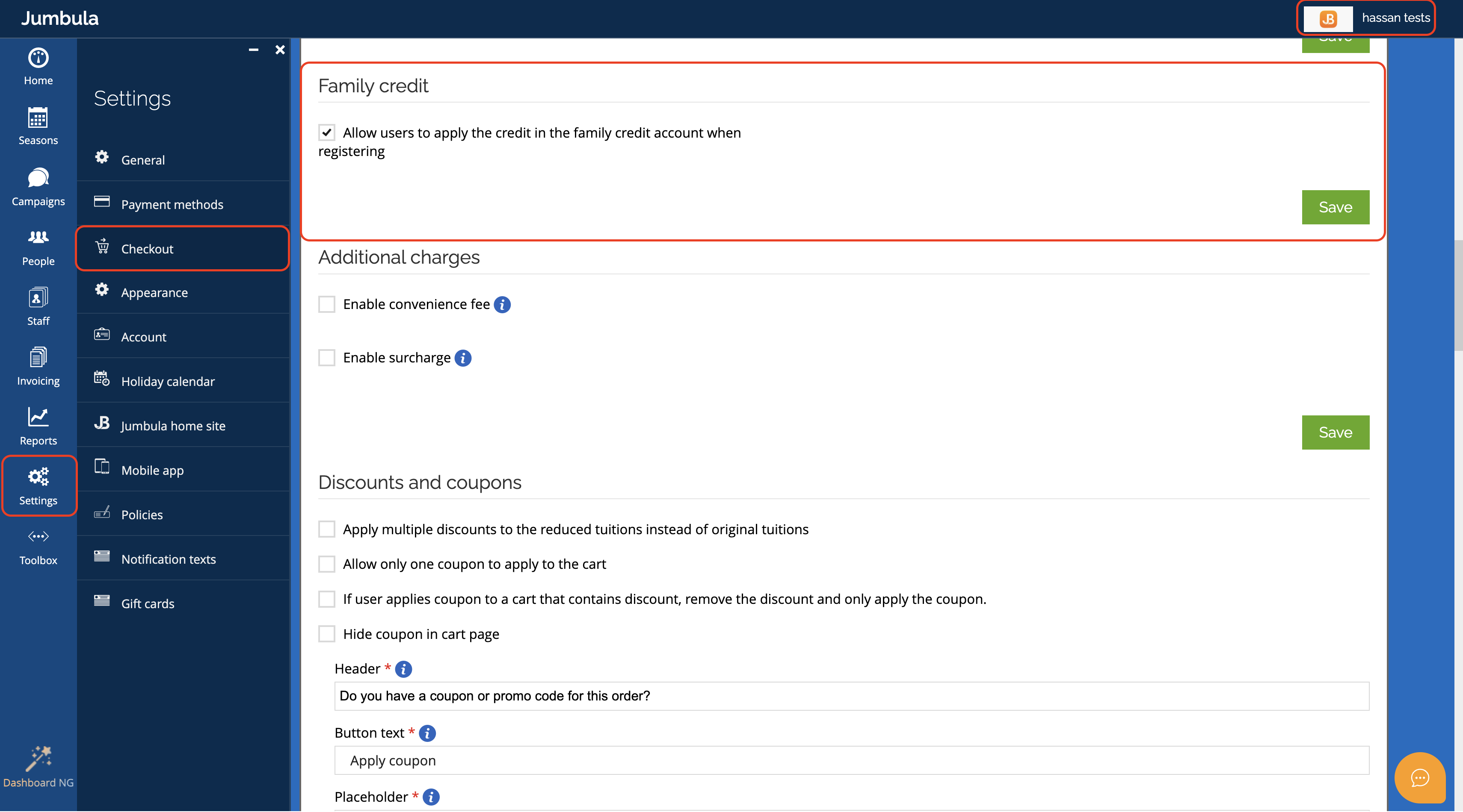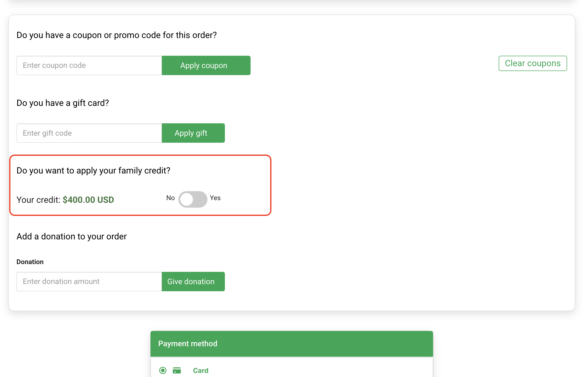 Admins: enable the family credit feature so families can use their available credit.
