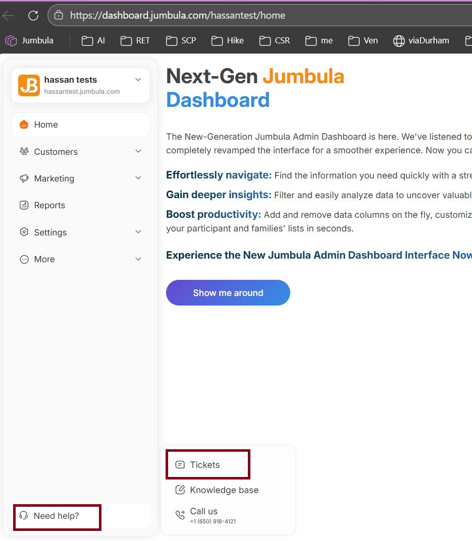 To submit a ticket, on go NG Admin Dashboard> Need help? > Tickets: