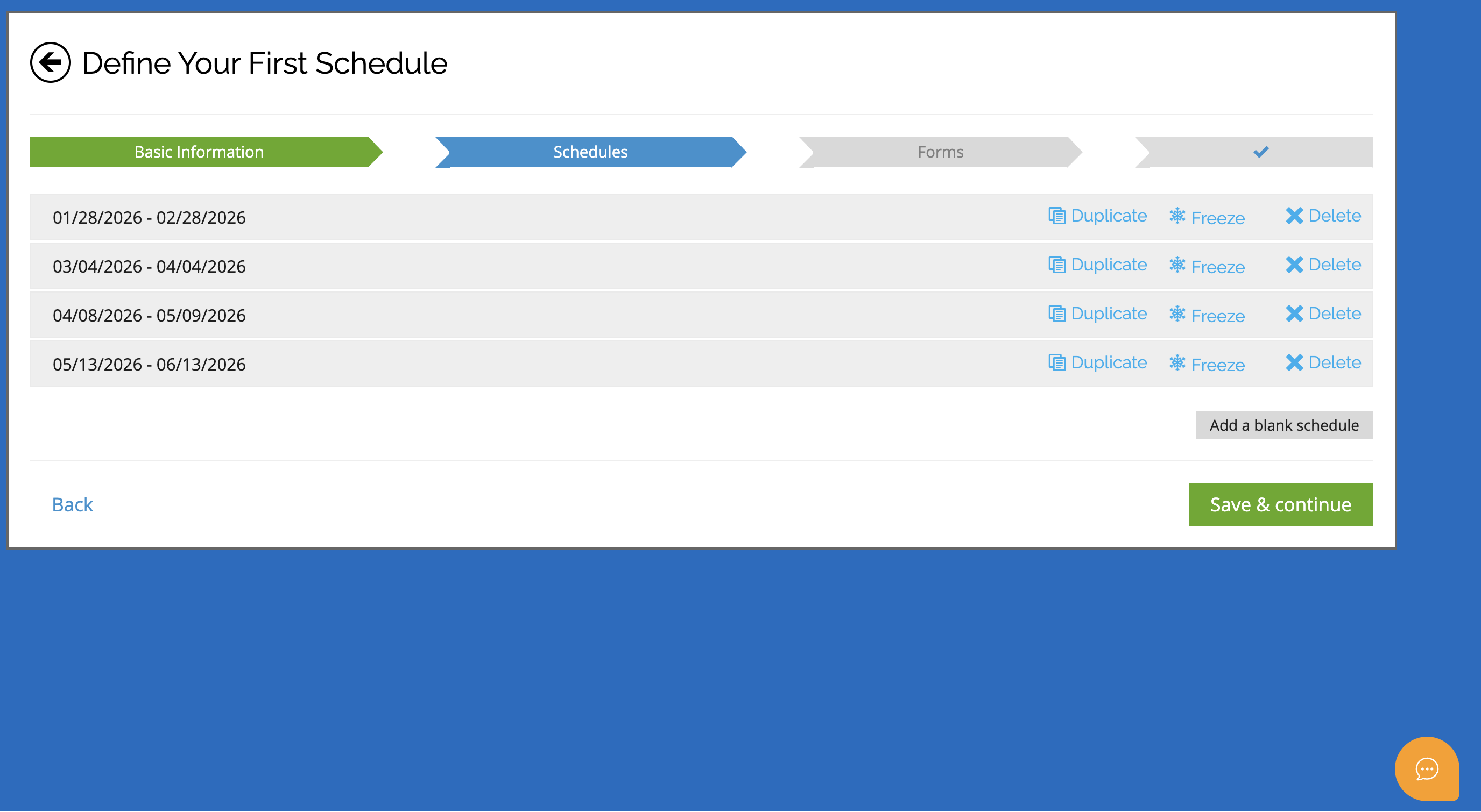 Click Save and Continue once your schedule is finalized.