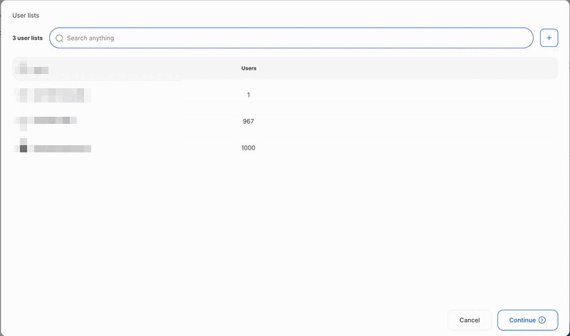 The user list is a manually customized list that you can set up according to your specific needs. This is a one-time setup, and once created, the lists can be reused in future campaigns. You can add users manually or upload a CSV file using our template.