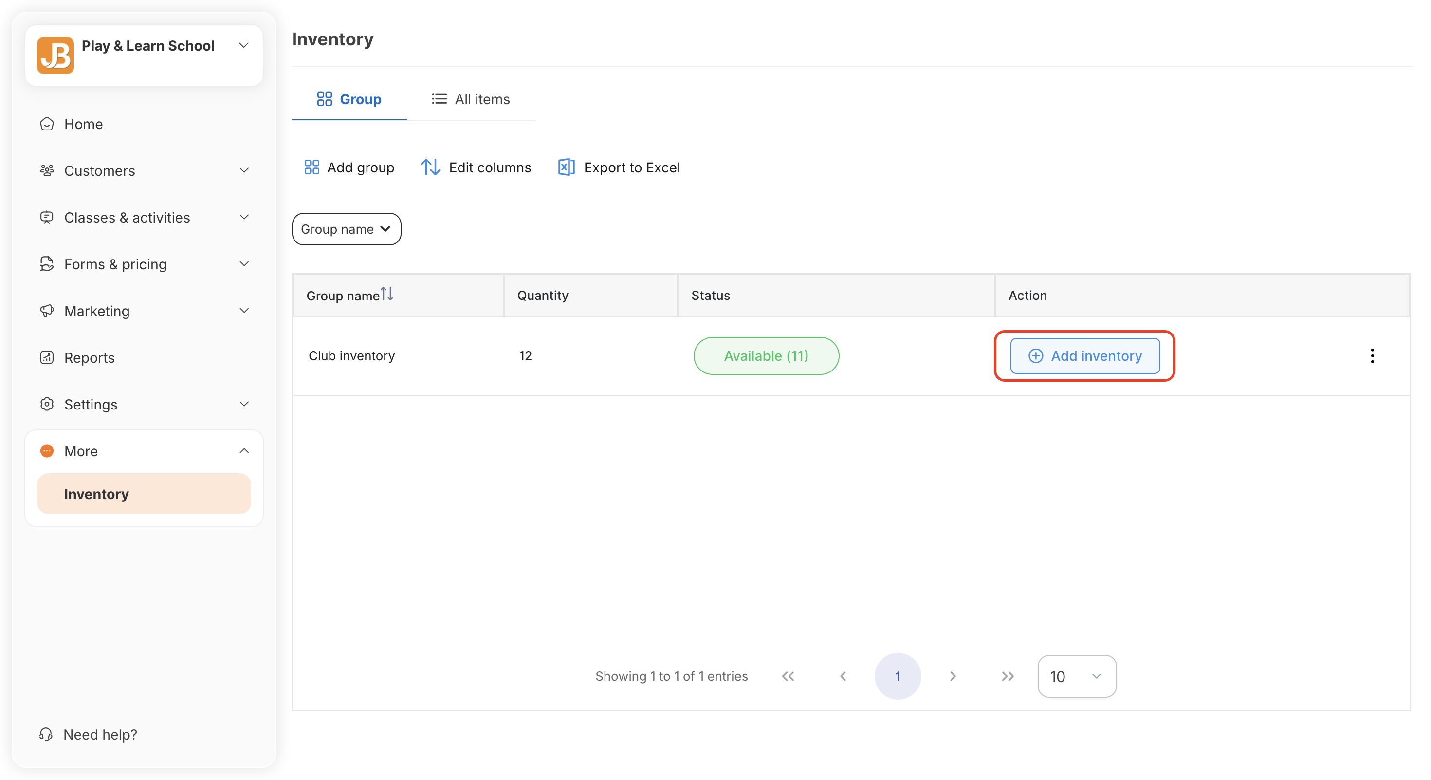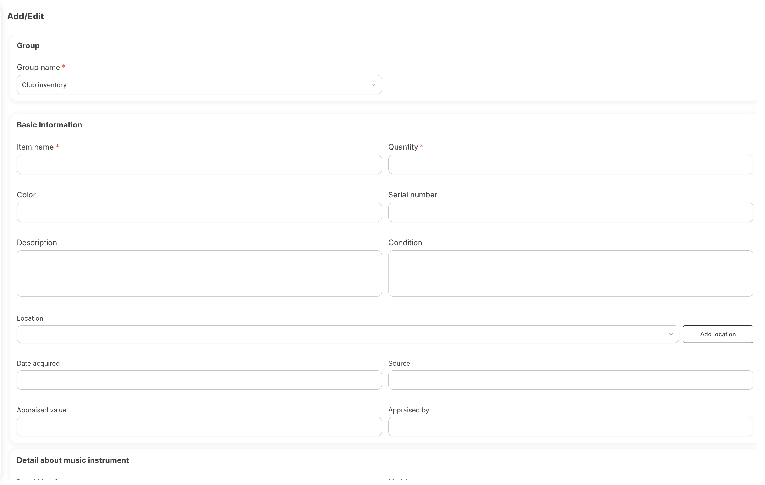 Once your groups are set up, you can populate them with specific assets. Click on Add inventory Item within your chosen group.