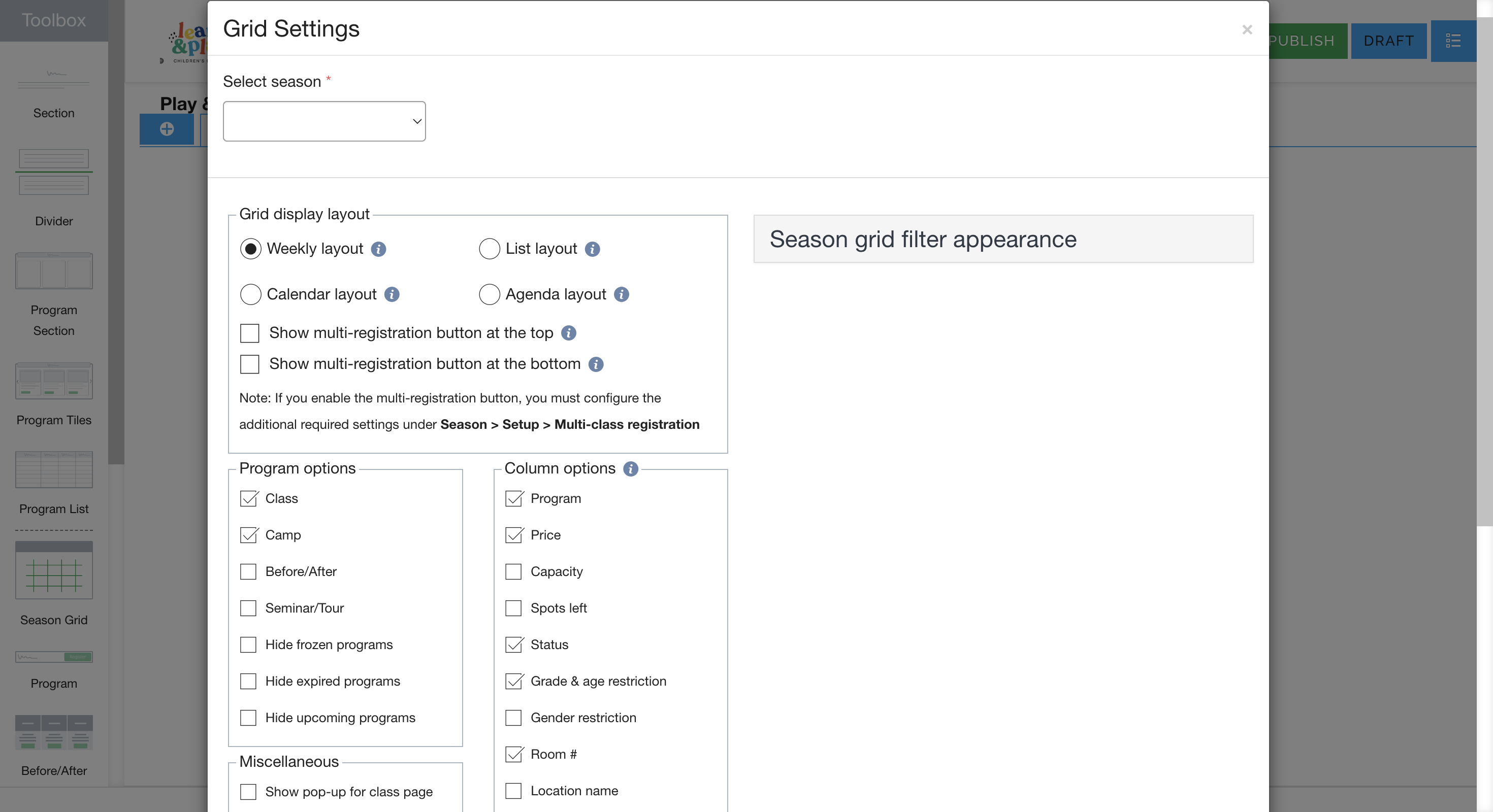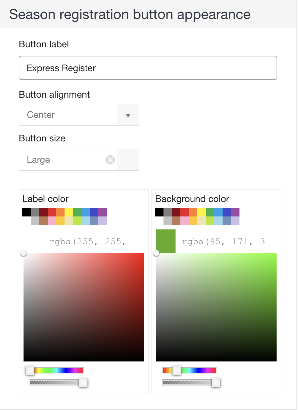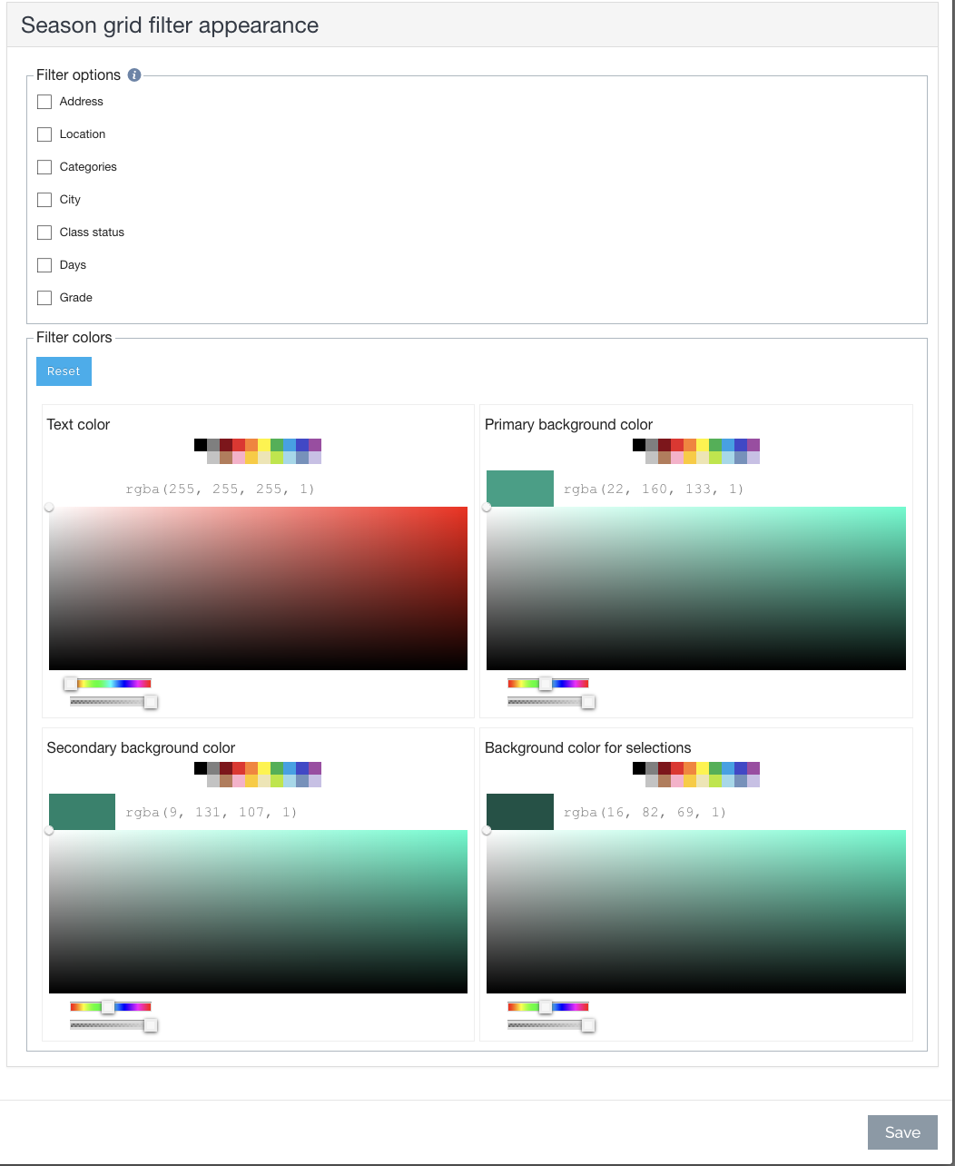You can also click the Season grid filter appearance and season registration button to customize the appearance of the button.