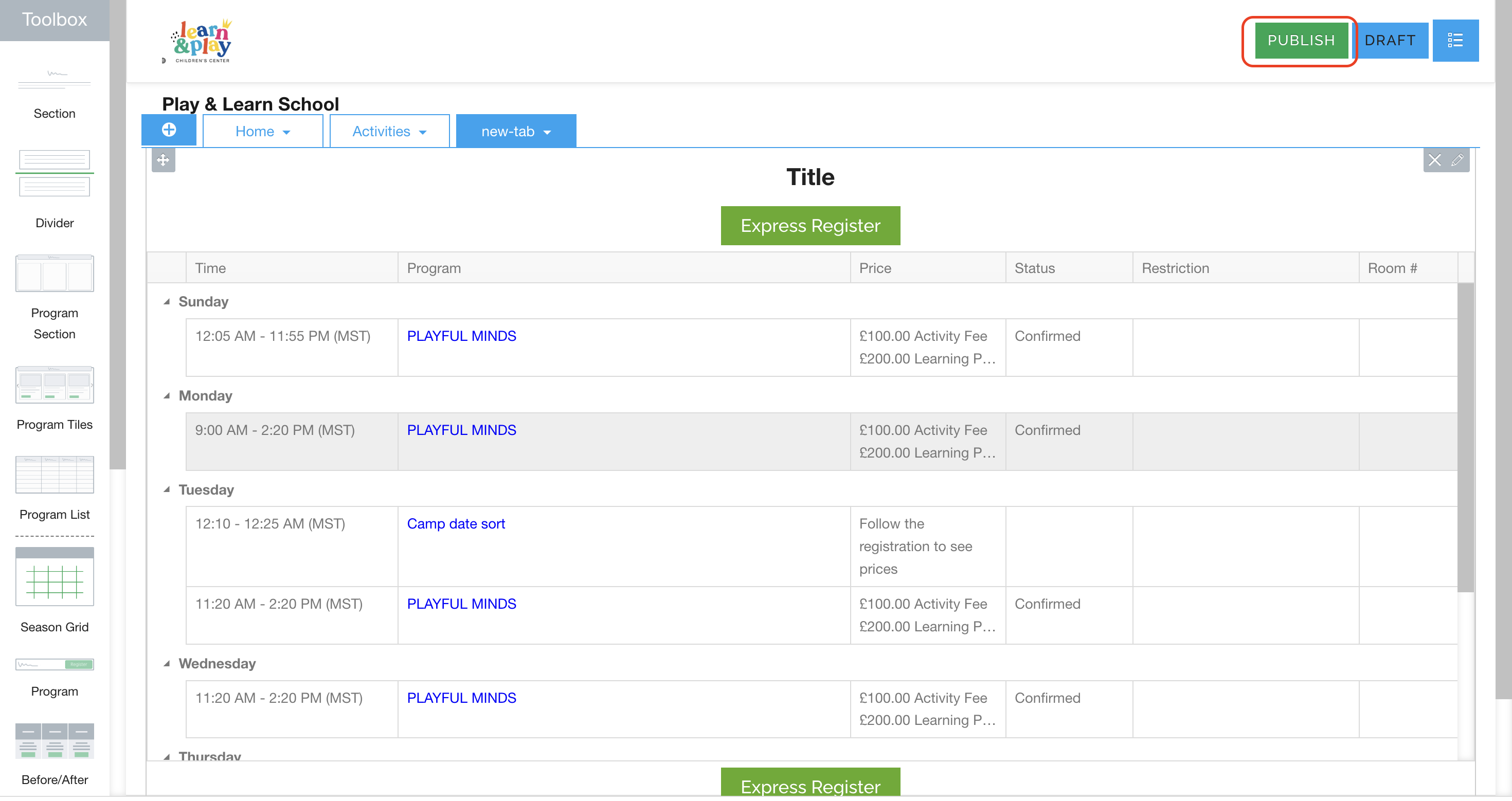 Overview You can save time and streamline your workflow using the Program Calendar, a centralized dashboard for managing your entire organization’s schedule. This interface allows you to monitor enrollment capacities, track sold-out sessions, and ...