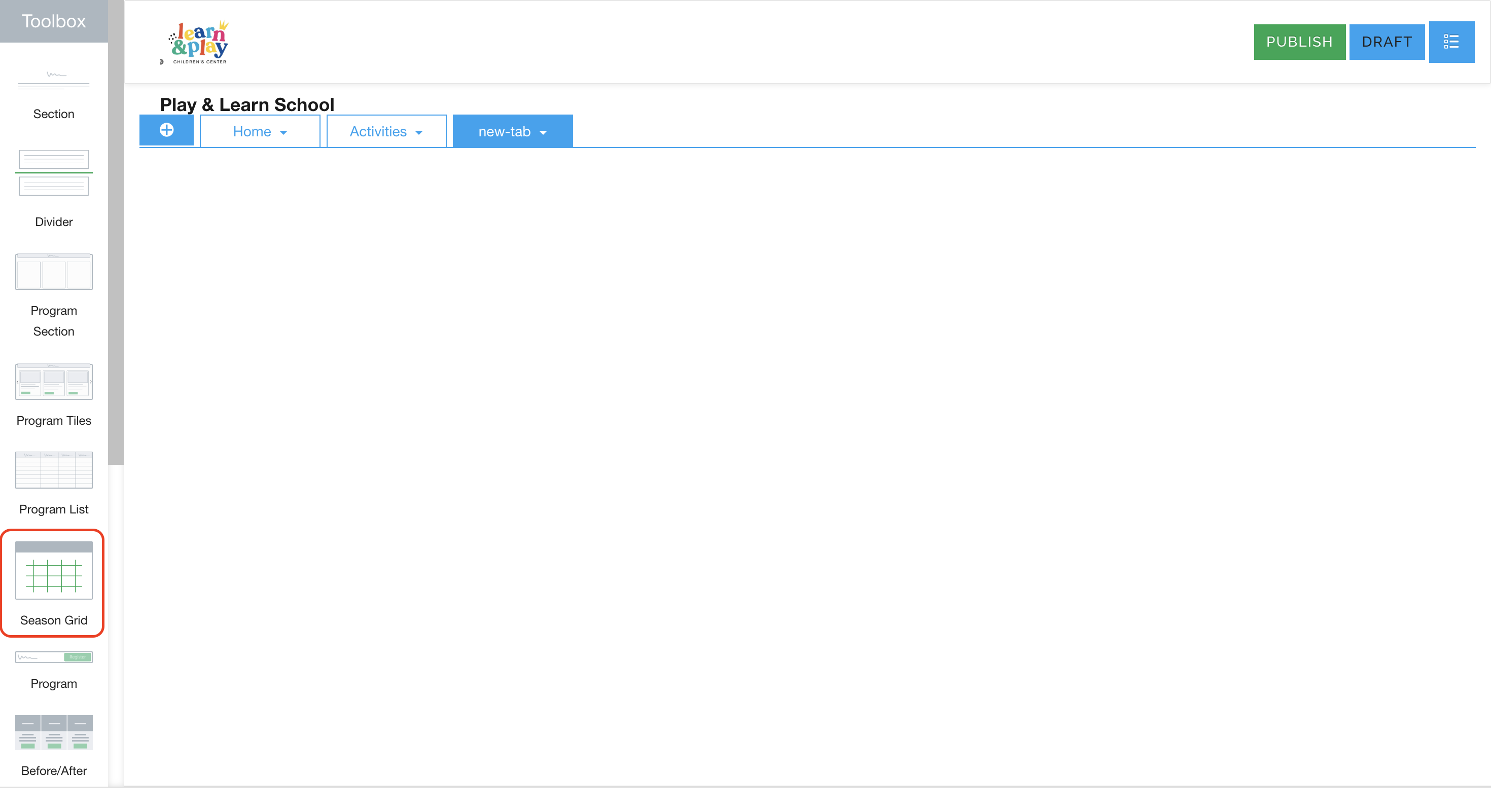 On the home site editor, locate the Season grid and drag & drop it on the home site space.