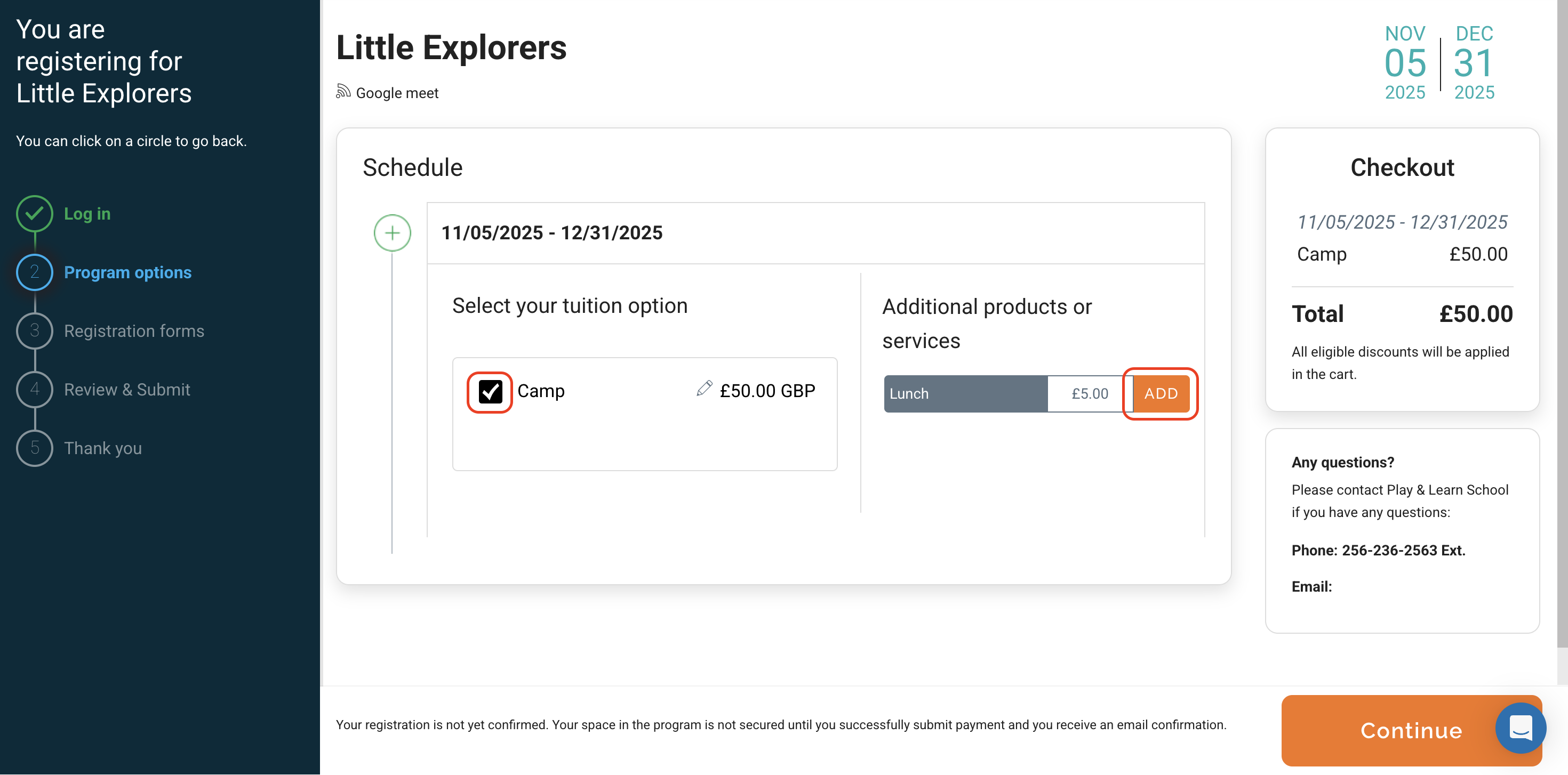 Step 1 — Choosing Schedule, Tuition, and Extra Services
